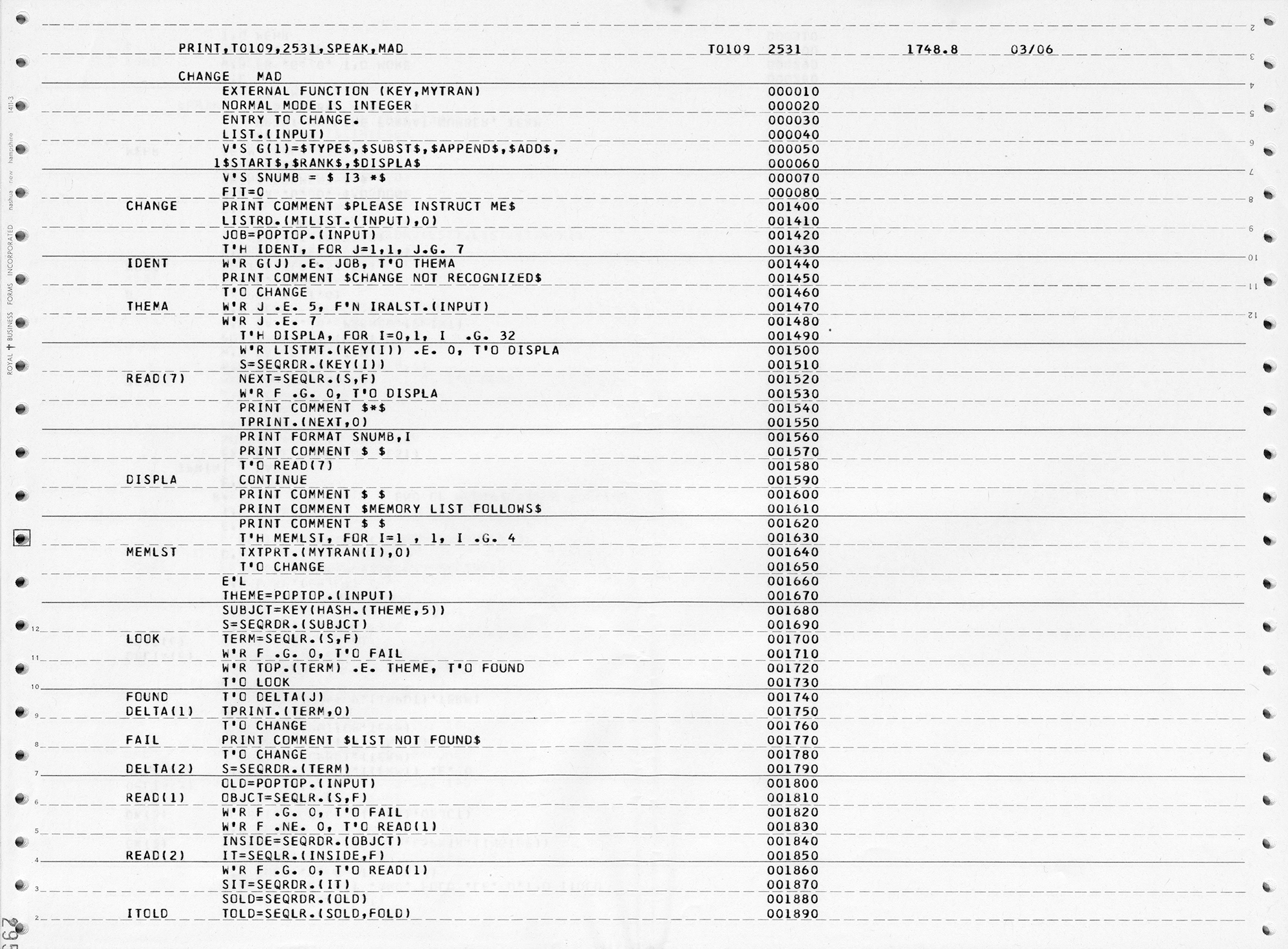 Original ELIZA Source code, Joseph Weizenbaum, 1965, Prof. Weizenbaum’s archives at MIT [CC-Zero].